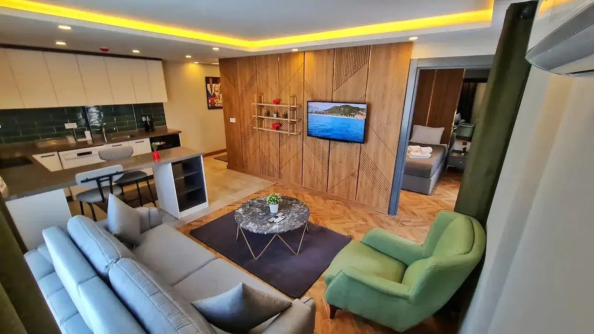Можно с питомцами! Квартира с одной спальней и просторной кухней-гостиной. В гостиной есть большой раскладной диван, на котором удобно могут разместиться двое взрослых. Смарт ТВ, стиральная машинка, кондиционеры и WiFi.Есть уютный балкон, на котором можно проводить время, наслаждаясь пением птиц. Окна расположены таим образом, что в квартире не жарко, при этом всегда довольно уютно и светло.